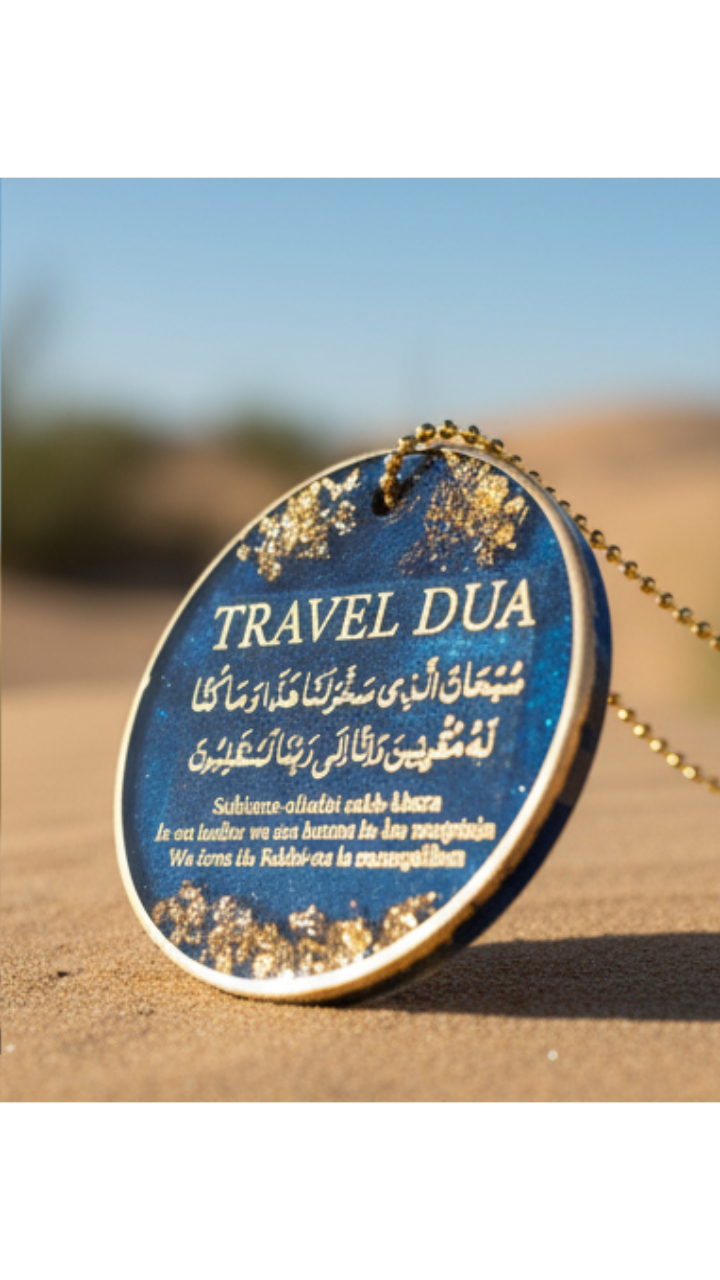 Elevate your daily commute or long-distance travels with the Safar Sentinel, a luxurious Islamic car hanging that merges faith with sophisticated artistry. This ornament is not just a decorative piece; it is a spiritual companion designed to bring peace of mind to the road. The centerpiece features the revered Travel Dua (Supplication) to invoke Allah’s protection and guidance during transit.Sacred Travel Dua: Inscribed with clear Arabic calligraphy and the English text "TRAVEL DUA," serving as a constant reminder to seek safety and blessings before starting any journey.Premium Gold-Flake Aesthetics: The design features a stunning high-gloss finish with real gold flakes suspended inside, creating a luxurious "marble and sand" effect that catches the light beautifully.Sophisticated Color Palette: Available in deep blue and pure white tones, the colors symbolize tranquility and purity, complementing any car interior.Travel-Themed Symbolism: The design is complemented by subtle imagery of airplanes and compasses (as seen in the collection), reflecting the spirit of adventure and direction.Thoughtful Gift Idea: An ideal present for frequent flyers, new drivers, or loved ones embarking on Hajj, Umrah, or a road trip, offering them a tangible symbol of care and protection.