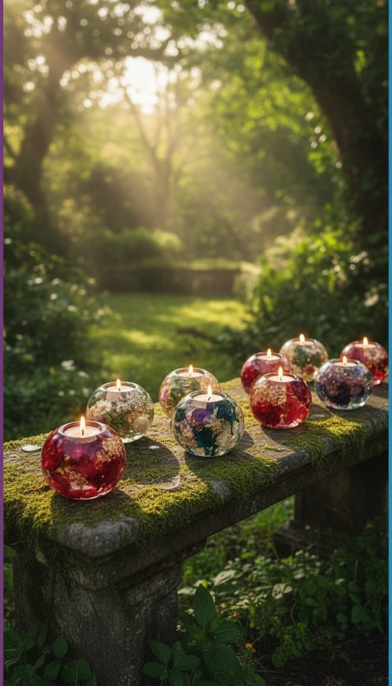 Bring the enchanting beauty of a timeless garden into your home with the Eternal Flora Resin Orb. This exquisite candle holder is more than just a light source; it is a piece of art. Meticulously handcrafted, the clear resin sphere suspends delicate preserved flowers and shimmers of gold in a permanent state of bloom. When a candle is placed inside, the light diffuses through the floral arrangement, casting a soft, colorful glow that transforms the atmosphere of any room.Encapsulated Nature: Features real preserved flowers and botanical elements in shades of purple and green, accented with gold flakes, all suspended within a crystal-clear resin sphere.Premium Resin Material: Made from durable, high-transparency resin that protects the flowers while allowing the candlelight to shine through beautifully, creating a stained-glass effect.Spherical Elegance: The perfectly round orb shape offers a modern yet organic aesthetic, allowing the décor to be appreciated from every angle.Warm Ambiance: Designed to hold a standard candle, the holder softens the flame into a gentle radiance that highlights the intricate textures and colors of the embedded blooms.Versatile Decor Piece: Whether used as a table centerpiece for a dinner party or as a calming accent on a bedside table, this unique piece blends functionality with sophisticated artistic flair.